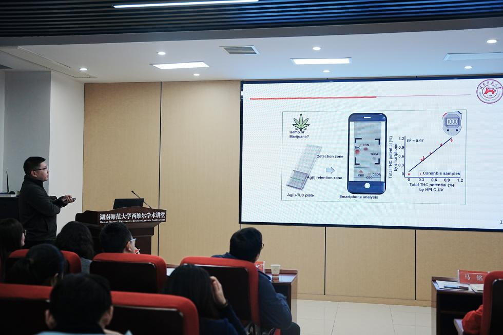 刘亮亮副教授进一步补充了麻类分析检测中心在活性成分筛选、电化学传感及工业大麻等领域的研究进展,展现了多学科交叉的研究特色。他以《天然活性成分的筛选与电化学传感研究》为题,分享了其在活性成分高效筛选、电化学传感平台构建及在工业大麻中的应用研究进展,体现了多技术融合的创新特色。