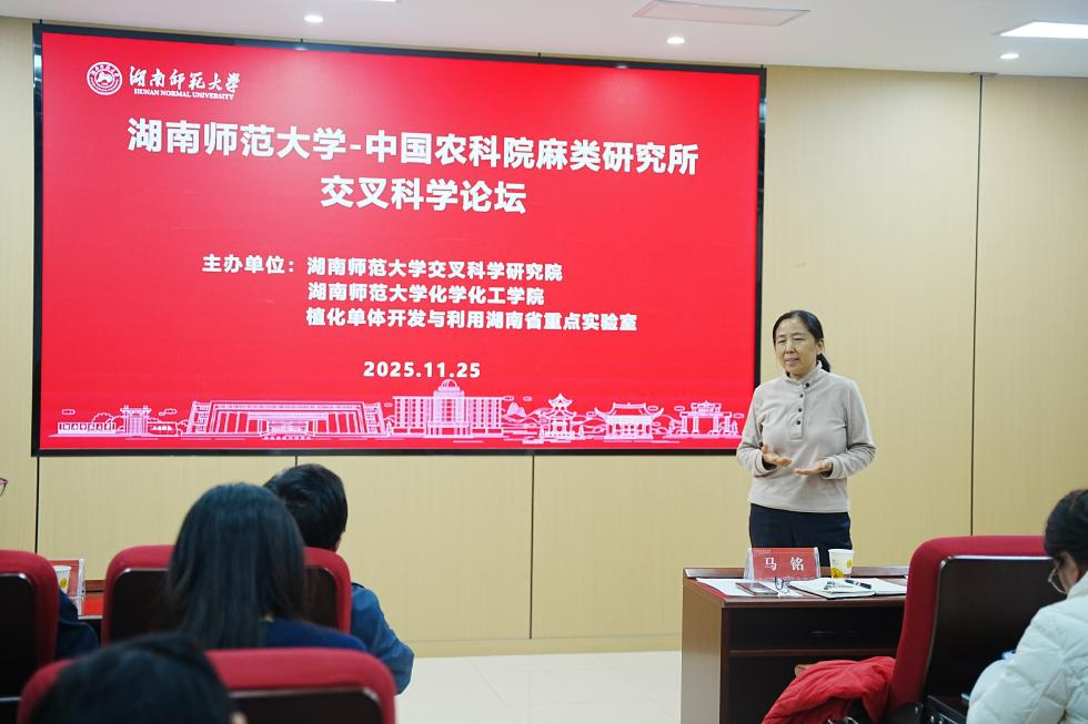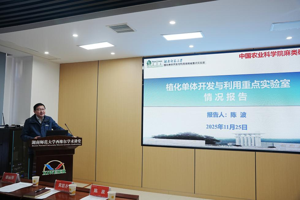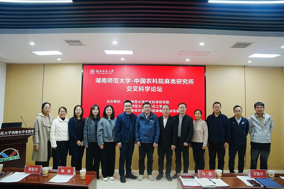11月25日,WilliamHill(威廉希尔)官网“植化单体开发与利用”湖南省重点实验室、交叉科学研究院与中国农业科学院麻类研究所联合举办交叉科学论坛(以下简称“论坛”),论坛在化学化工学院西维尔学术讲堂举行。出席本次论坛的嘉宾包括:中国农业科学院麻类研究所分析检测中心主要负责人黄思齐、副主任刘亮亮、高级实验师廖丽萍和助理研究员刘源,WilliamHill(威廉希尔)官网交叉科学研究院副院长艾建平,重点实验室主任陈波教授,以及实验室学术骨干和研究生等。论坛由实验室马元鸿教授、郭宾教授和中国农科院麻类研究所廖丽萍高级实验师分段主持。